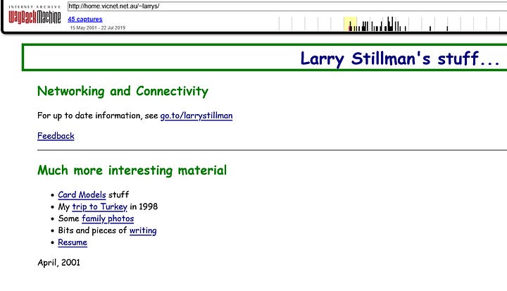 I’m calling it time. Deep in the mists of time, I started putting material online sometime in either late 1994 or 1995. I honestly can’t remember. I think all that early stuff has disappeared (it was a tilde directory to VICNET), but by the late 1990s I was building websites for various causes, mostly for community conferences and causes. And I can’t even remember the www address some of the dead websites to look for! The Internet Archive only started trawling in the late 1990s.